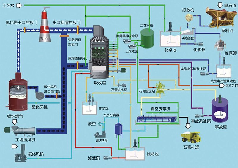 電石渣-石膏法脫硫工藝?yán)秒娛ㄒ胰补に囍挟a(chǎn)生的固廢--電石渣作為脫硫劑,副產(chǎn)的脫硫石膏可作為建材行業(yè)(如水泥廠、石膏板廠)的助劑或原料,也可作為土壤改良劑等,脫硫效率可達(dá)98%以上。作為我公司自主研發(fā)的脫硫工藝,技術(shù)創(chuàng)新性強(qiáng),在電石渣預(yù)處理、脫硫石膏品質(zhì)控制、脫硫廢水處理等方面均達(dá)到了國際領(lǐng)先水平,該工藝具有“以廢治污、資源化、低碳、循環(huán)經(jīng)濟(jì)”的獨(dú)特優(yōu)勢(shì)。