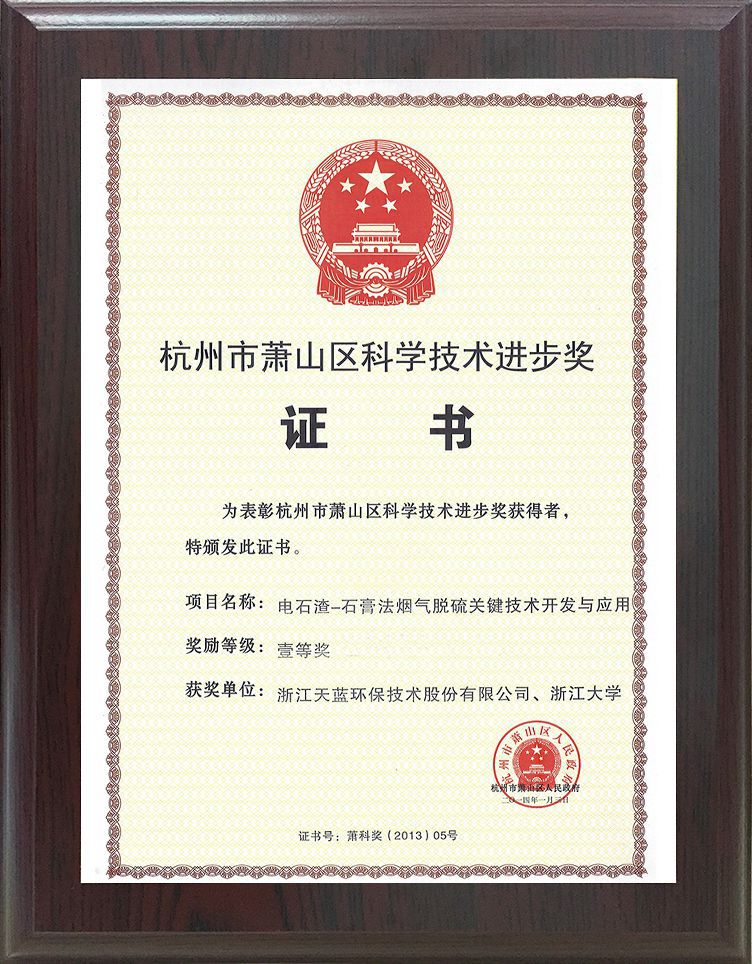 蕭山區(qū)科學(xué)技術(shù)進(jìn)步一等獎(jiǎng)