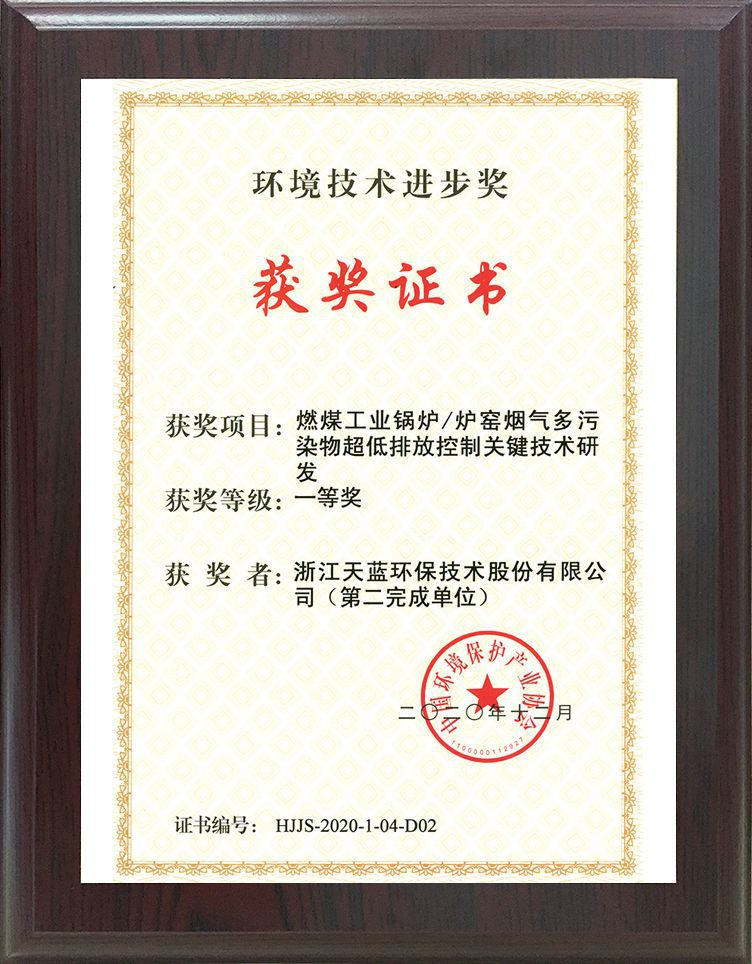 中國(guó)環(huán)保產(chǎn)業(yè)協(xié)會(huì)環(huán)境技術(shù)進(jìn)步獎(jiǎng)一等獎(jiǎng)