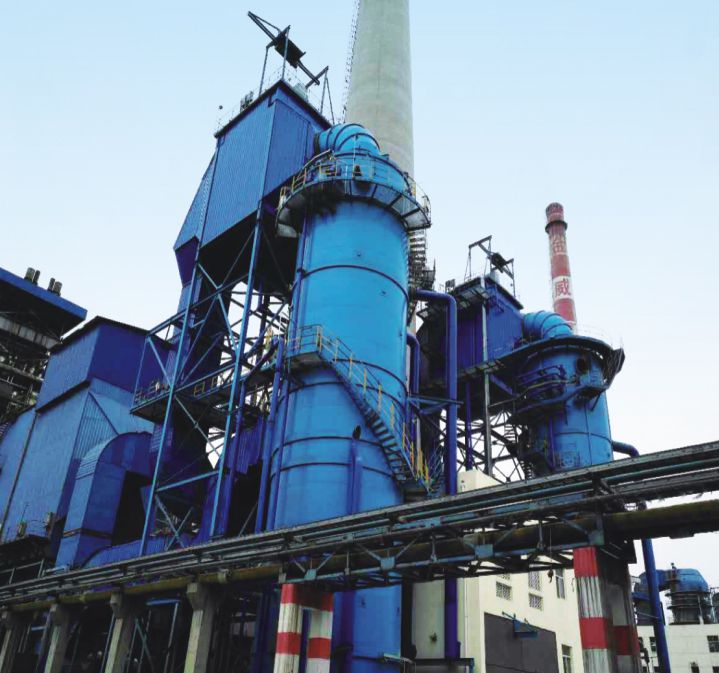 山東華勤集團(tuán)兗州市銀河電力有限公司3×220T/H鍋爐濕電工程,采用塔外布置,濕電上部進(jìn)氣,濕電下部側(cè)向?qū)鐨?,采用正六邊形CFRP (導(dǎo)電玻璃鋼)陽(yáng)極管,鈦合金芒刺線。