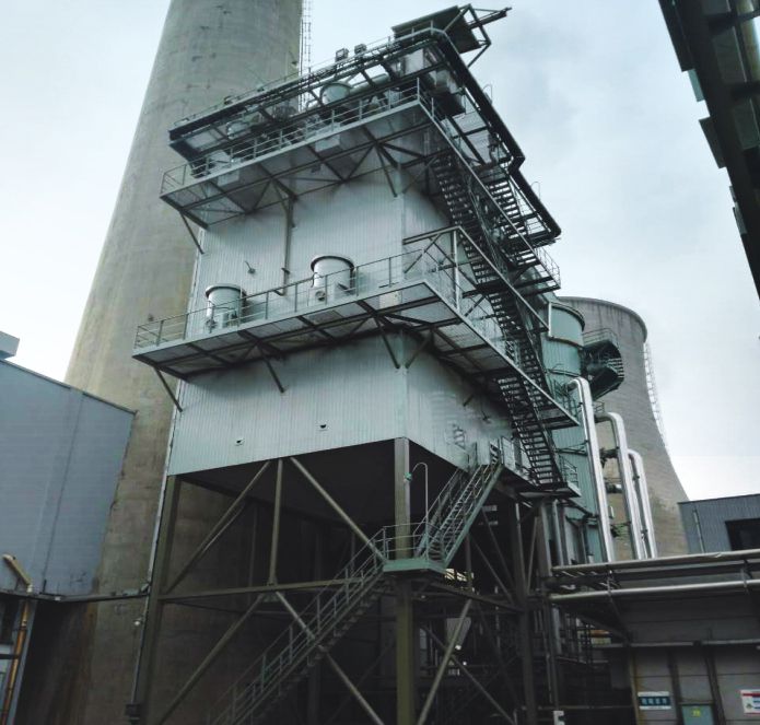 濟(jì)寧金威熱電有限公司2×130t/h鍋爐濕電工程,釆用塔外臥式金屬板式濕電,配置堿液掛膜沖洗水系統(tǒng)。